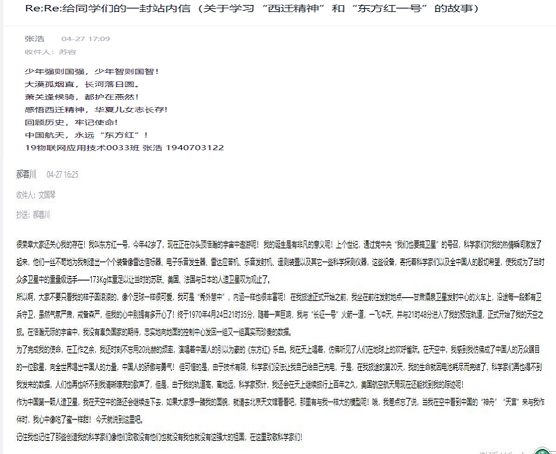 其一,厚植爱国情感。同学们表示从信件中学习到以爱国主义为核心,以听党指挥跟党走,与党和国家、与民族和人民同呼吸、共命运为精髓的“西迁精神”,深刻领悟了“热爱祖国、无私奉献,自力更生、艰苦奋斗,大力协同、勇于登攀”的“两弹一星”精神。同学们的情感与西迁老一辈和“东方红一号”的老科学家们产生了强烈的共鸣,纷纷表示“此生无悔入华夏,来世再做中国人”!