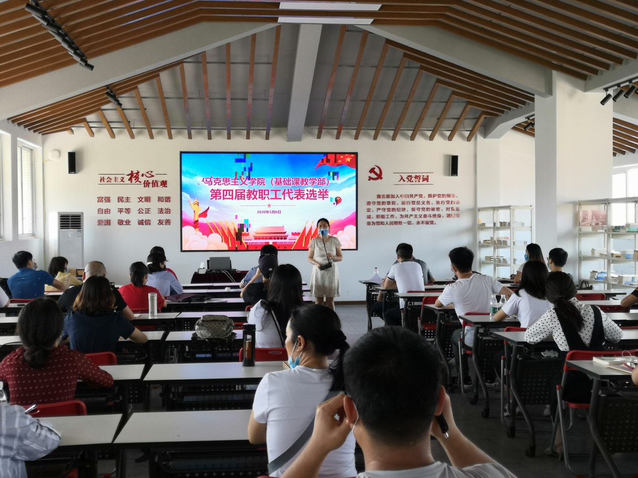 2020年5月6日下午,马克思主义学院(基础部)召开第四届教职工代表选举会,选举产生新一届教职工代表。大会由马克思主义学院院长许永莉同志主持,大会应到有选举权的教职工40名,实到37名。