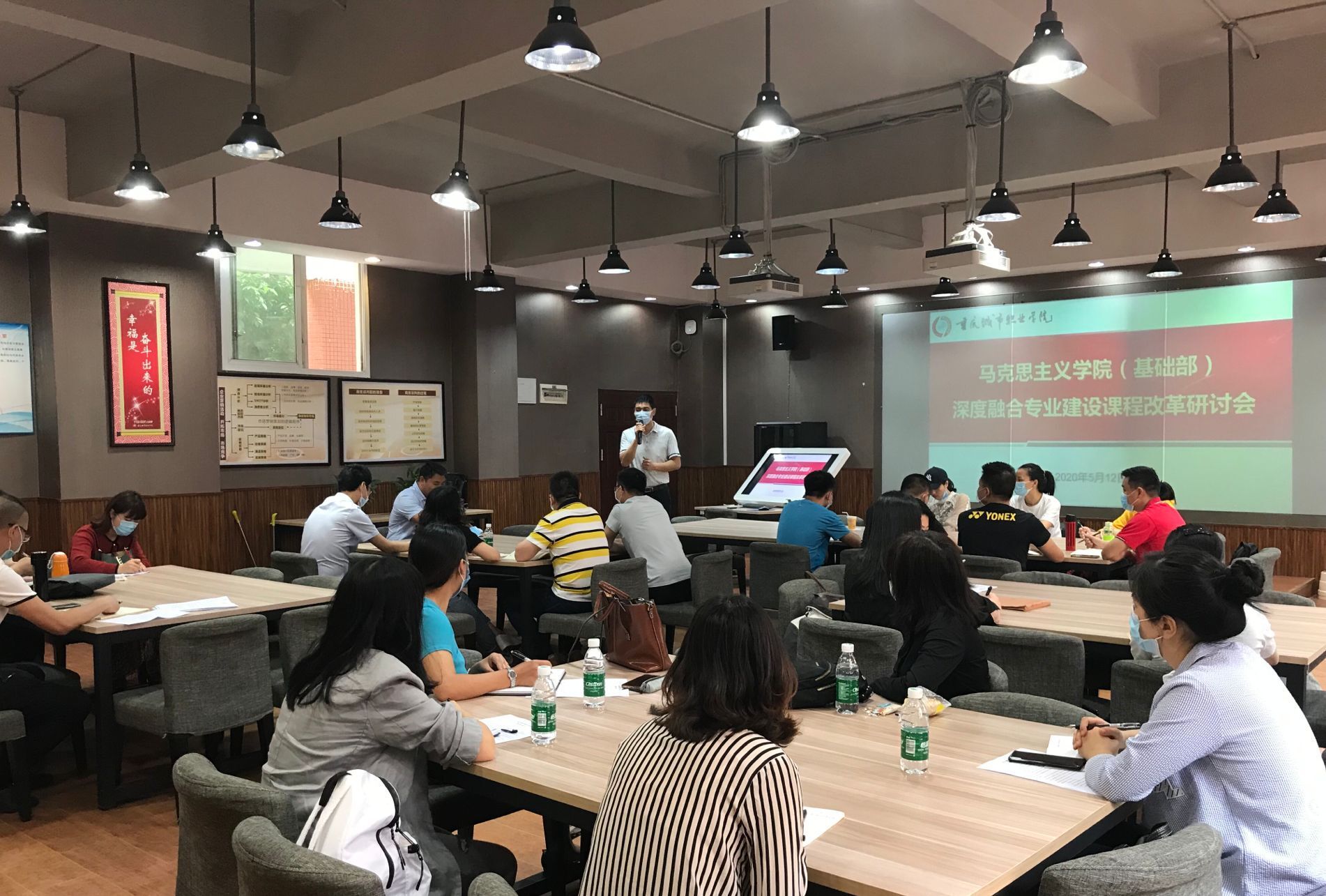 2020年5月12日上午马克思主义学院(基础课教学部)与大数据学院、旅游管理系在光华楼202室就深度融合专业建设课程改革进行交流研讨。马克思主义学院(基础课教学部)副院长陈浩同志、大数据学院副院长刘振栋同志、旅游管理系临时负责人幸亮同志及其各专业负责人与英语、体育、数学教研室全体教师进行了热烈深入的研讨。研讨会由陈浩同志主持。