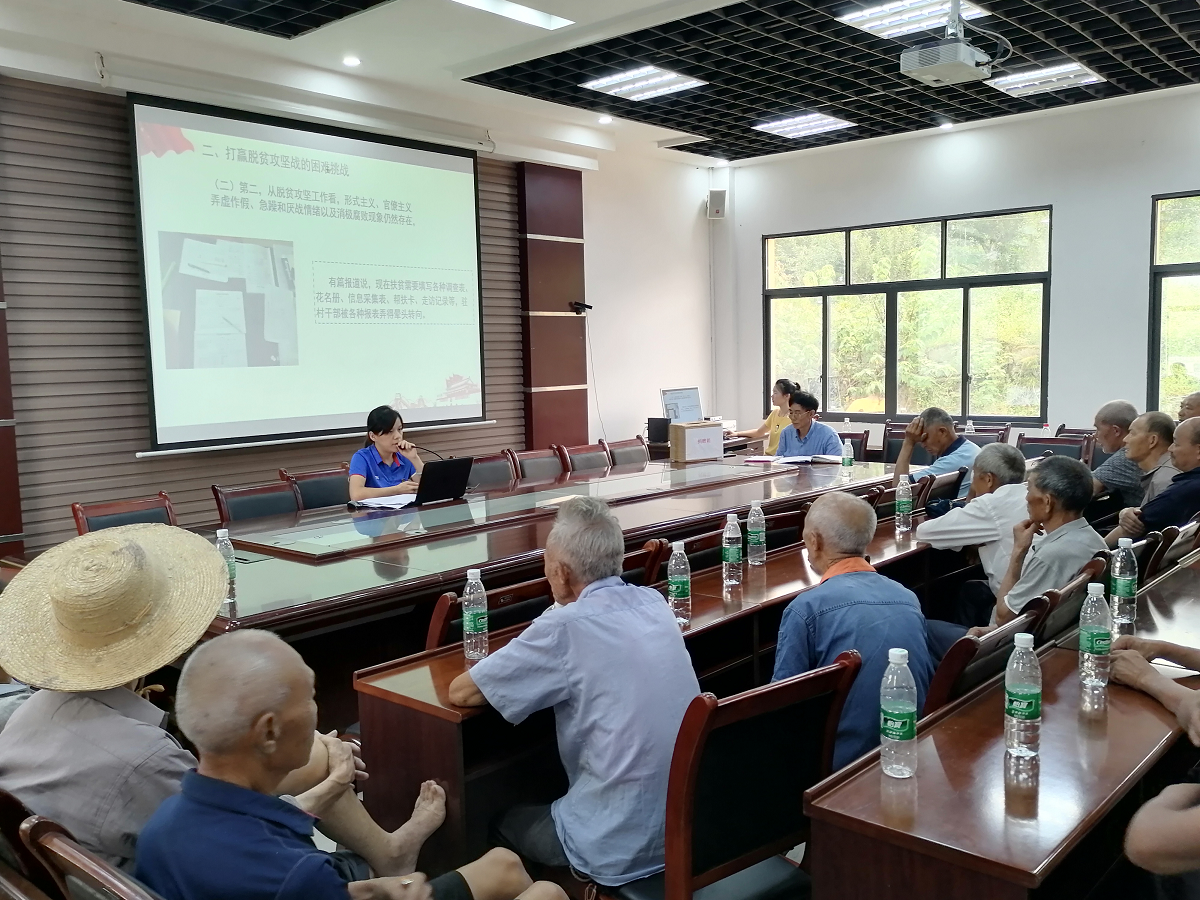结合前期的资料查阅和进村调研,本次党课的两个主题是:《用铁的纪律管党治党》《决战决胜脱贫攻坚战》。面对平均年龄62岁的老龄党员们,许永莉同志首先和他们一起回顾了中国共产党纪律建设的历程,她用朴实生动的语言、丰富鲜活的案例、详实可靠的数据讲述了党的纪律建设取得的成效及面临的挑战、全面加强党的纪律建设的任务要求,希望基层党支部能继续加强组织、纪律和作风建设,在脱贫攻坚中发挥战斗堡垒作用,也希望老龄党员们能继续发挥余热,为基层党建献策建言。